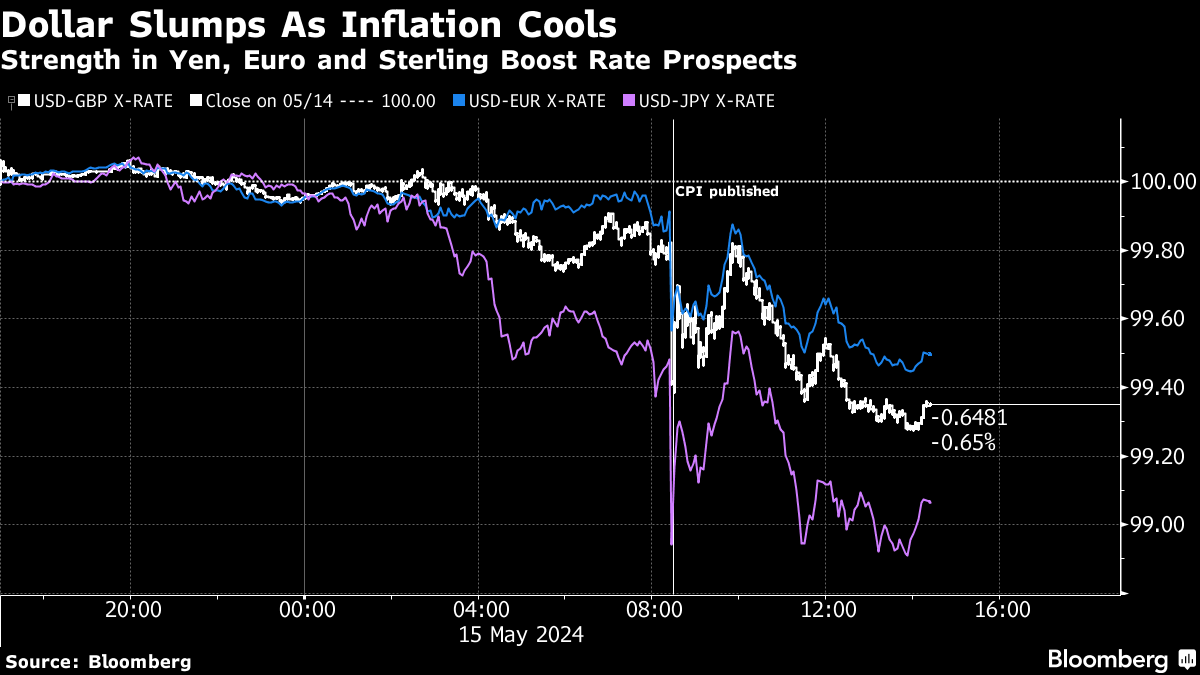 这在通胀数据出来后,他们的货币相对于美元的强势表现中得到体现。预期欧洲央行和英格兰银行将很快降息推动了他们的货币升值,如下图所示,而日元有望受益于这种急需的缓冲: