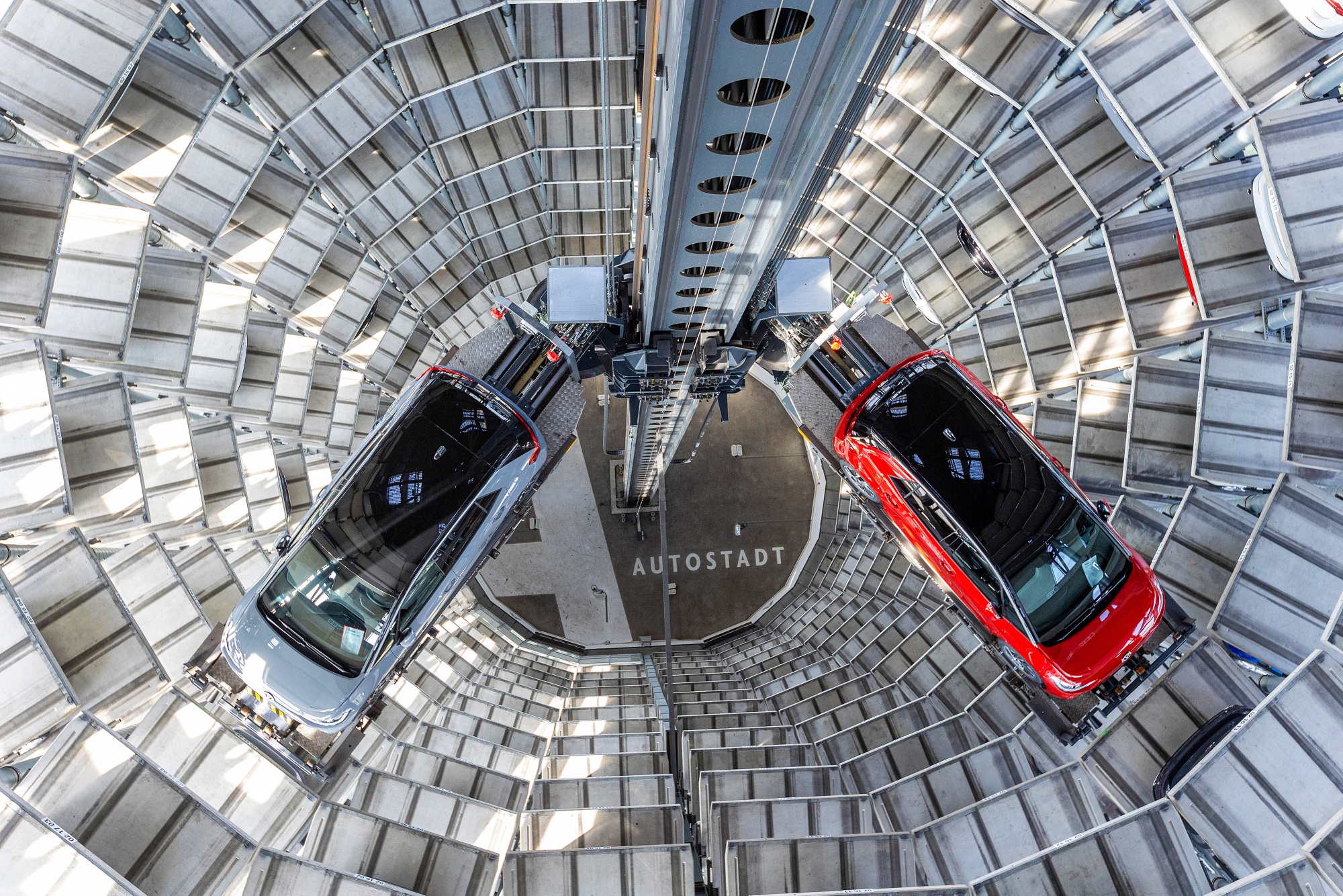 大众ID.3电动汽车停放在德国沃尔夫斯堡大众总部综合体的Autostadt交付塔内。摄影师:Krisztian Bocsi/Bloomberg大众别无选择,只能倾向于其电气化信息传递,此前曾大举押注于“清洁”柴油发动机。当公司被发现在排放测试中作弊时,这一赌注出现了问题,迫使公司急转向电池动力汽车。到2019年,时任CEO赫伯特·迪斯宣布在未来十年推出多达75款全电动车型。