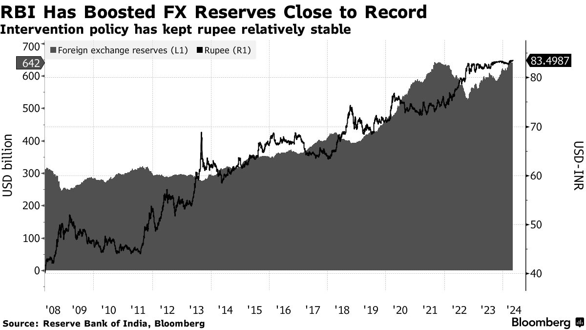 央行通常会介入外汇市场以平滑波动,当外资流入增加时购买多余的美元,从而防止本币升值过快。当卢比面临压力时,通过在市场上卖出美元购买本币来支持卢比,外汇储备会减少。