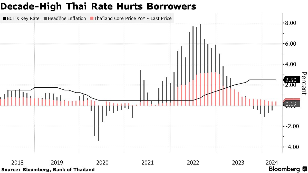 自去年9月以来,BOT将借贷成本保持在10年高位的2.5%,即使通货膨胀降至负值。上个月,BOT表示保持利率稳定为其提供了处理货币波动、地缘政治风险以及美联储转向宽松时机带来的不确定性的“政策选择性”。