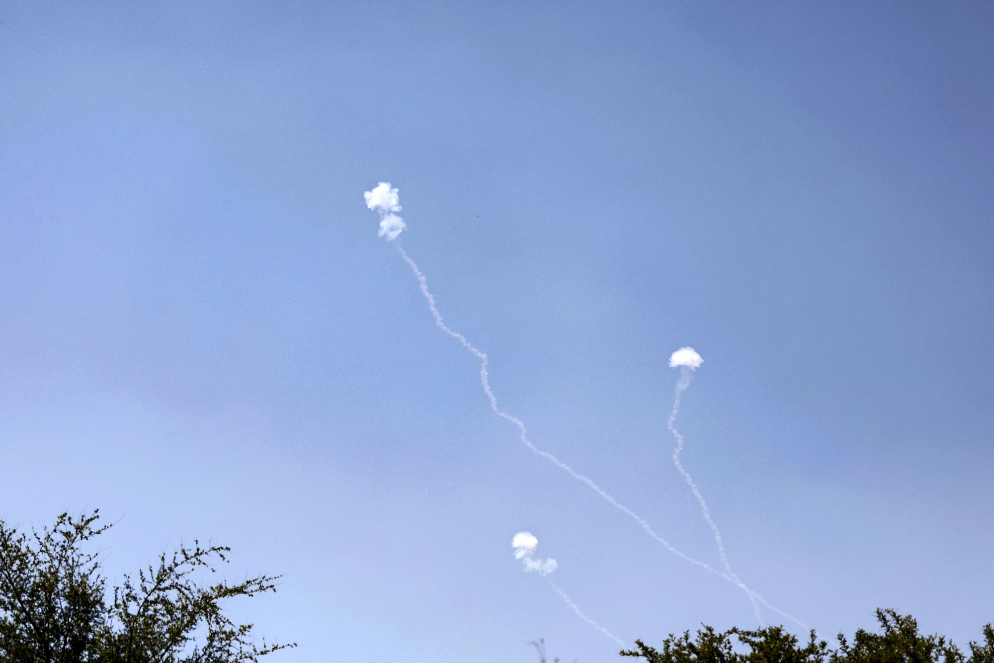 来自黎巴嫩南部的火箭被以色列铁穹防空系统在戈兰高地上拦截,时间是5月16日。