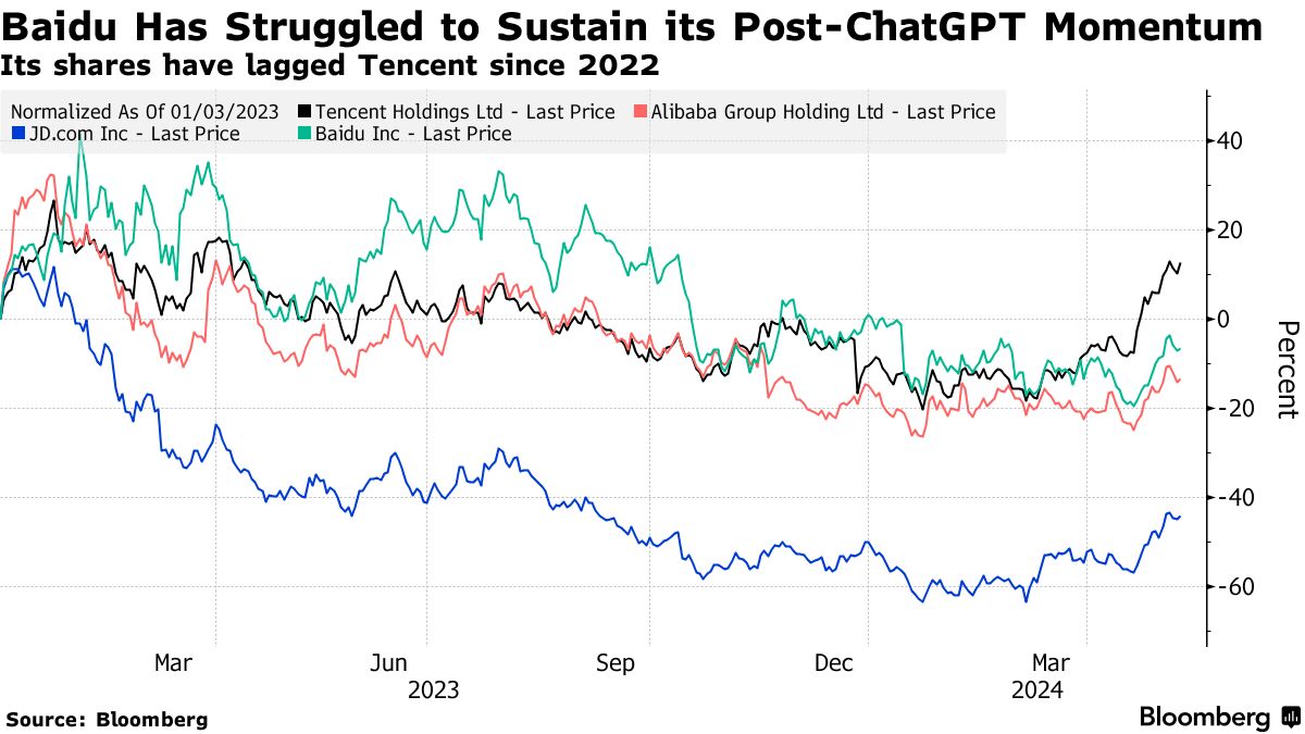 这些结果凸显了中国互联网搜索领导者如何在将其在生成式人工智能方面的先发优势转化为实际收入方面遇到困难。百度正寄望于人工智能来播种未来增长,这可能使其跻身全球科技巨头的顶层。其“厄尼”模型已经带来订阅费用和广告收入,使其领先于同行公司,如腾讯控股有限公司和字节跳动有限公司。