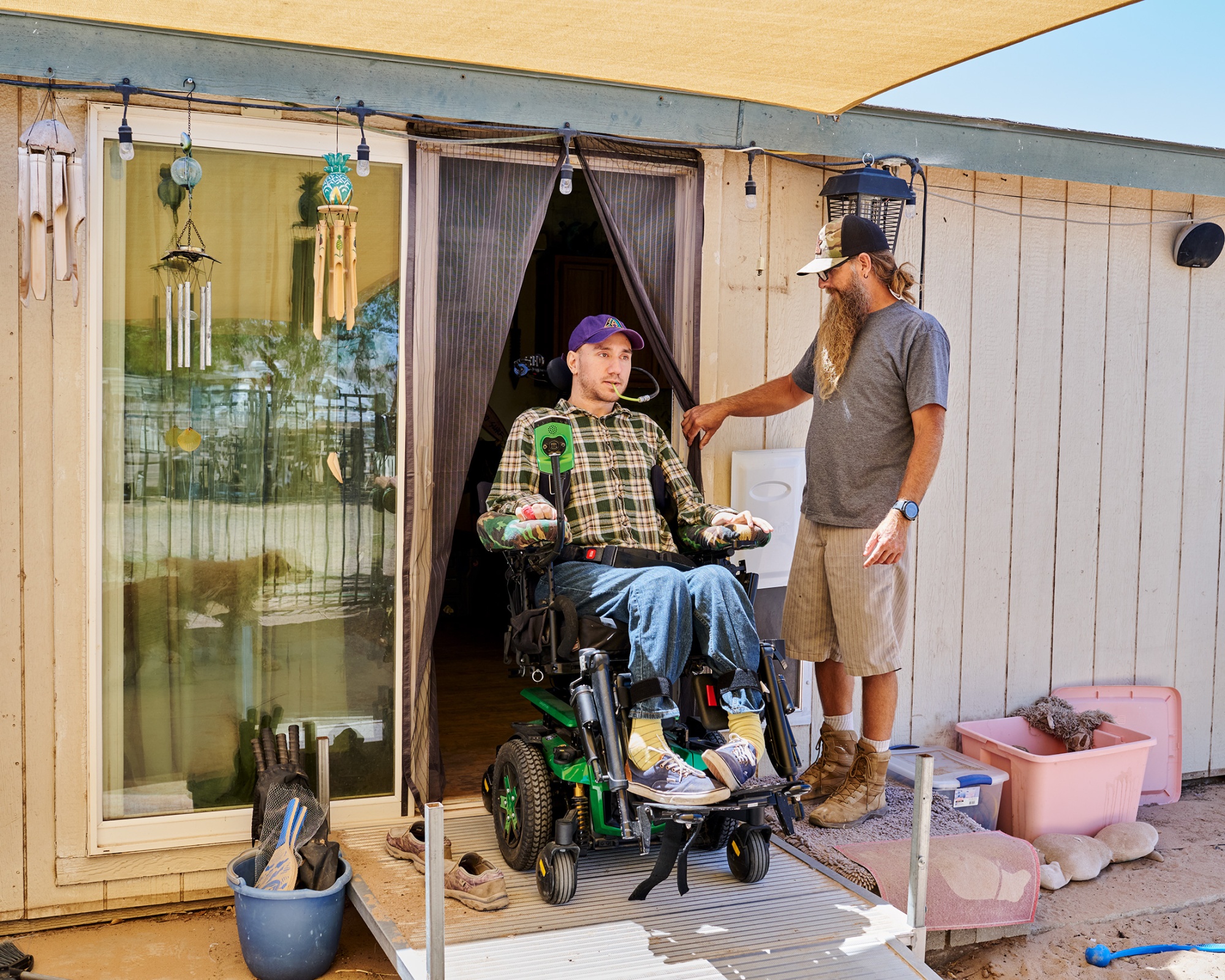 当然,由于事故,所有这些计划都烟消云散了。但是,阿尔博看起来是一个随和、聪明的年轻人,他以一种淡定、耐心的方式谈论自己的伤势和病情,口音中带着德克萨斯州的特有轻松愉快的腔调,这种腔调可能是他在德克萨斯州期间习得的。他留着小胡子,两个耳垂上戴着小耳环。偶尔,阿尔博的身体会抽搐,他会请求23岁的塔维塔帮忙,拉伸他的手臂或腿,因为它们被扭曲成一个棘手的姿势,这对兄弟俩显然已经做过很多次了。