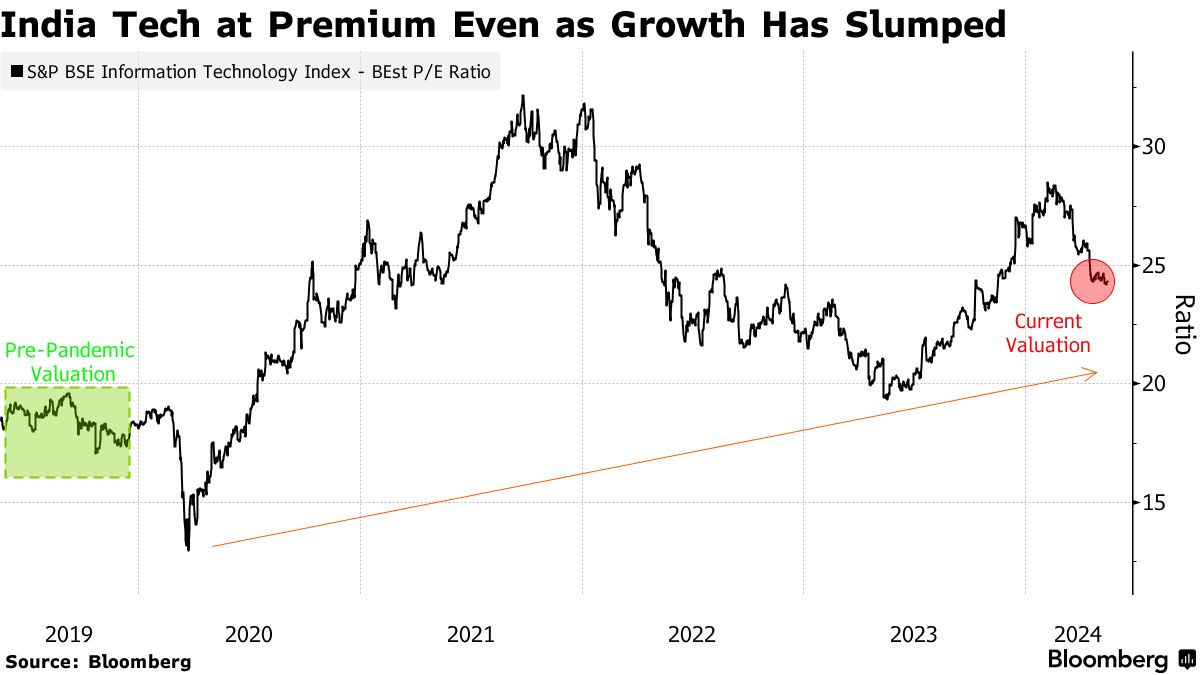 印度软件股票的BSE有限公司指数最近跌破关键支撑水平,进入技术性修正。然而,在印度股市多年的上涨之后,它仍然远高于历史平均收益倍数。