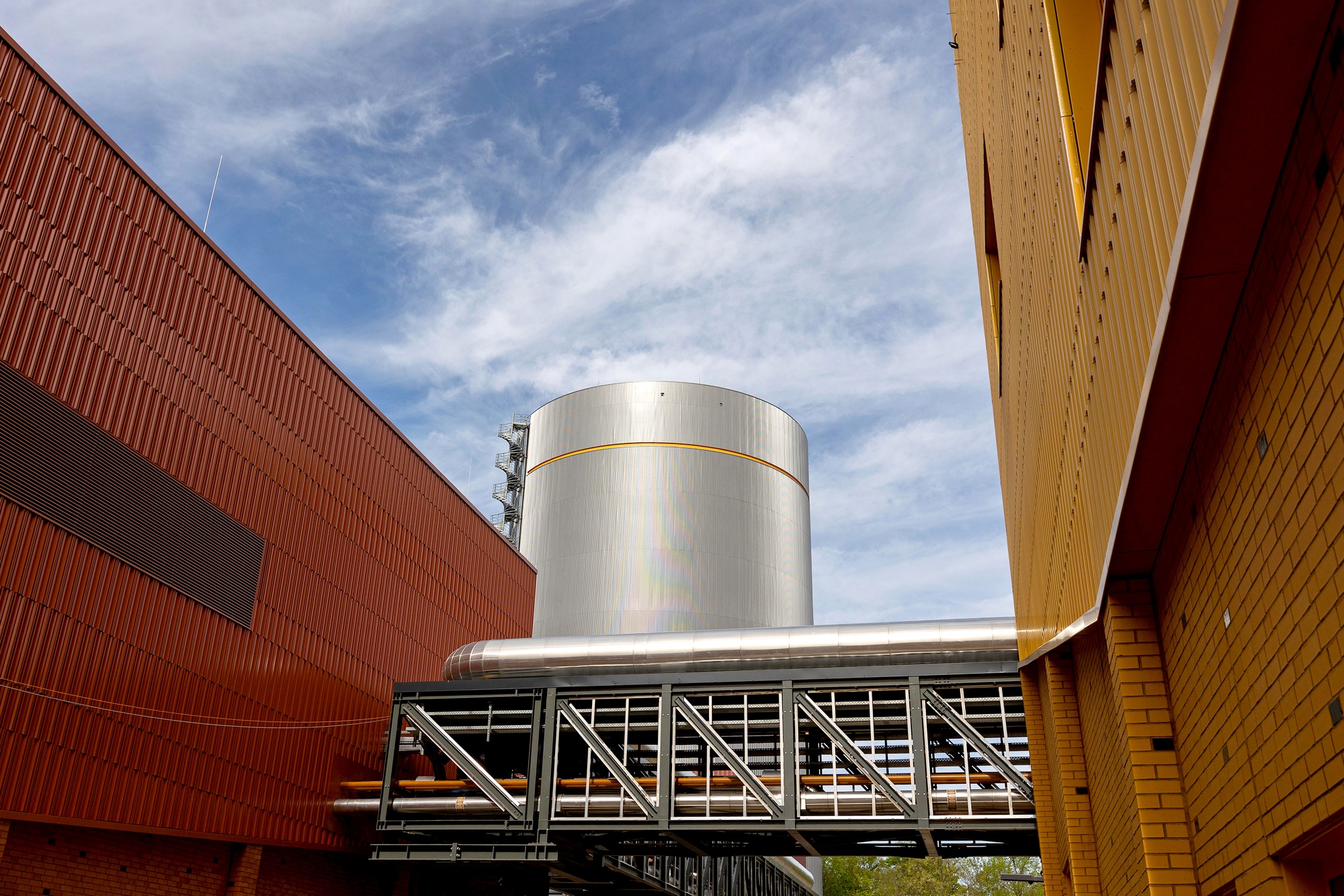 莱比锡苏德联合供热电厂的天然气储存。摄影师:Krisztian Bocsi/Bloomberg然后是氢气输送的问题。莱比锡电厂尚未连接到电网(也尚未建立自己的电解装置),这意味着这种极易燃烧的燃料在政府宏伟计划的第二部分实现之前将不得不通过卡车运输。政府正在布伦斯比特尔(位于北海沿岸的一个小镇)建设一个价值10亿欧元的液化天然气终端,最初将进口液化天然气,但设计也能处理未来的清洁燃料。