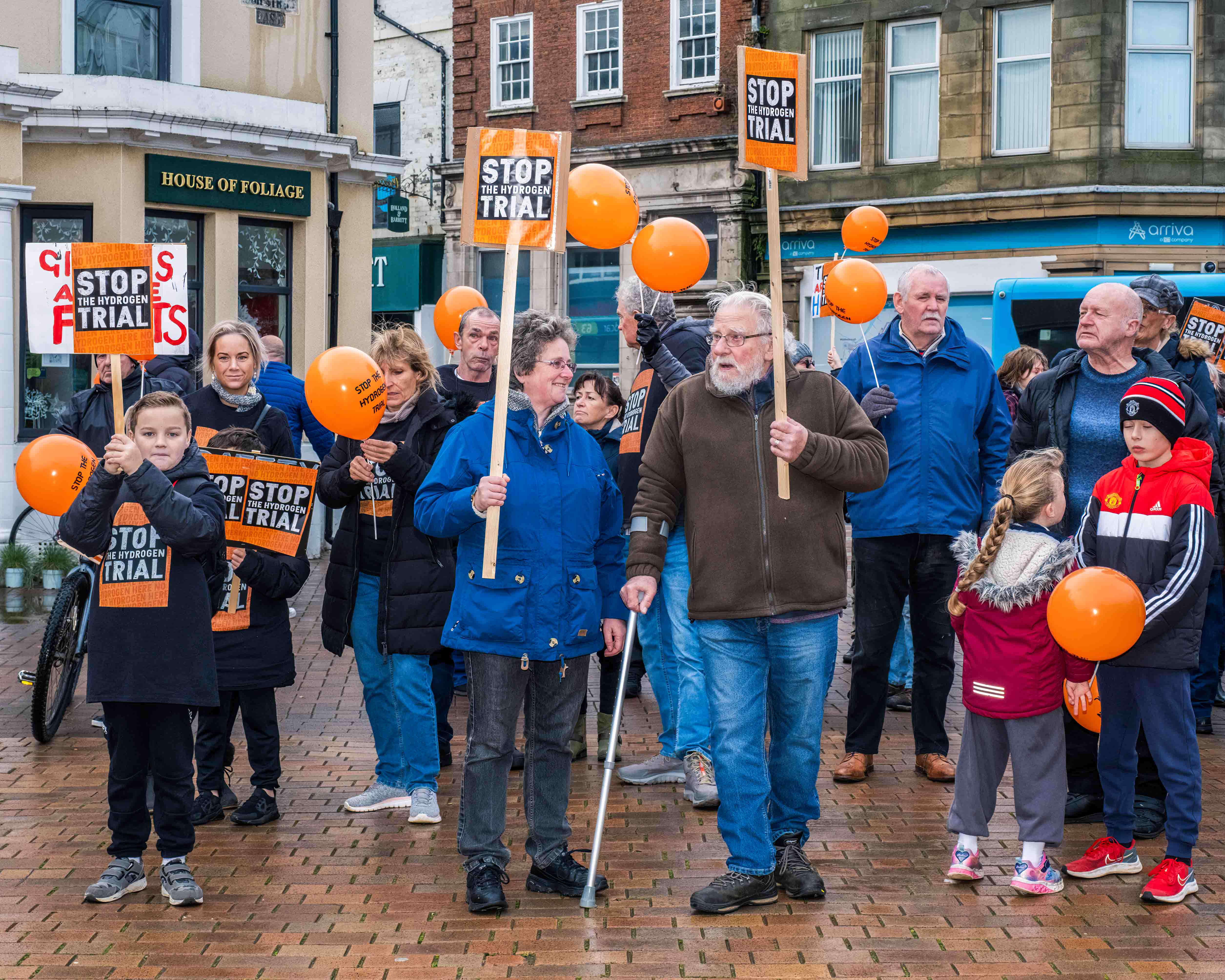 反对2023年11月在Redcar提议的氢试验的抗议者。摄影师:Richard Eyers北方煤气网络有限公司将其宣传为降低能源账单和碳足迹的简单方法。结果证明,该项目将是强制性的,要求每个人放弃燃气并转换为氢气网。这种转换还将导致重大的、具有破坏性的改建,包括一套独立的管道和新的家用炉灶。