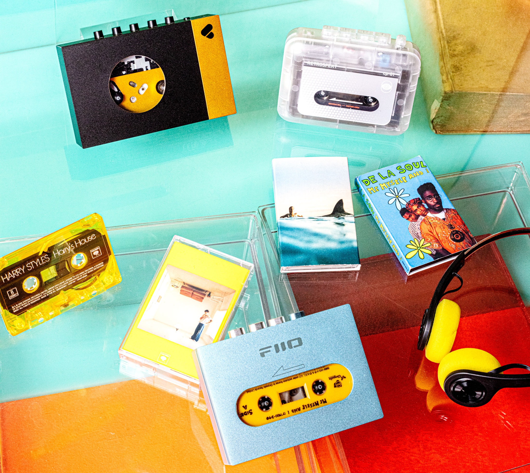 顺时针,从左上角开始:We Are Rewind、Retrospekt CP-81和FiiO CP13便携式磁带播放器。还有:We Are Rewind EQ-001无线耳机
