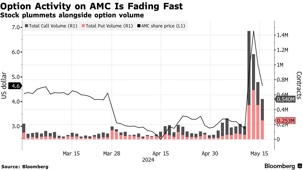 然而,这一次的情况并非如此。GameStop的期权交易活动已经下降,而围绕AMC股票的活动已经比周一的峰值减少了一半以上。
