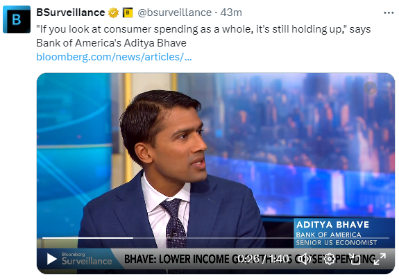 美国银行全球研究的Aditya Bhave提出了更加悖论的观点:该银行的信用卡数据表明,低收入消费者的状况比许多经济学家认为的要好。原因是:工资和就业增长在那里的比例比富裕美国人更强劲,他说。