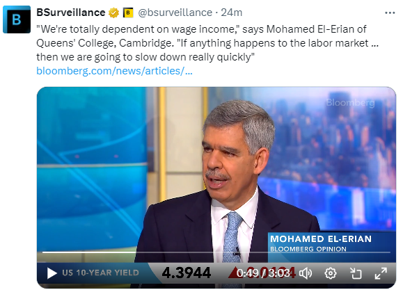 这是一个脆弱的依据来支撑经济希望,埃尔-埃里安反驳道。“我们完全依赖工资收入,如果劳动力市场发生任何变化 — 我希望不会发生 — 但如果发生了,我们会迅速放缓。”