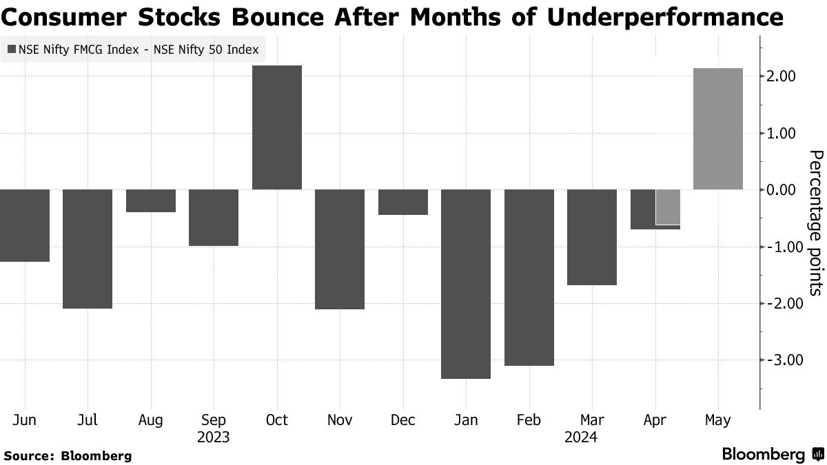 摩托车制造商、农业设备制造商和快速消费品生产商在2024年及时和高于正常的季风雨预测后已经上涨,此前两年极端和非常规的高温给印度农业带来了灾难。农村地区的销售量正在改善,几家主要消费品公司预测未来业务将更强劲。
