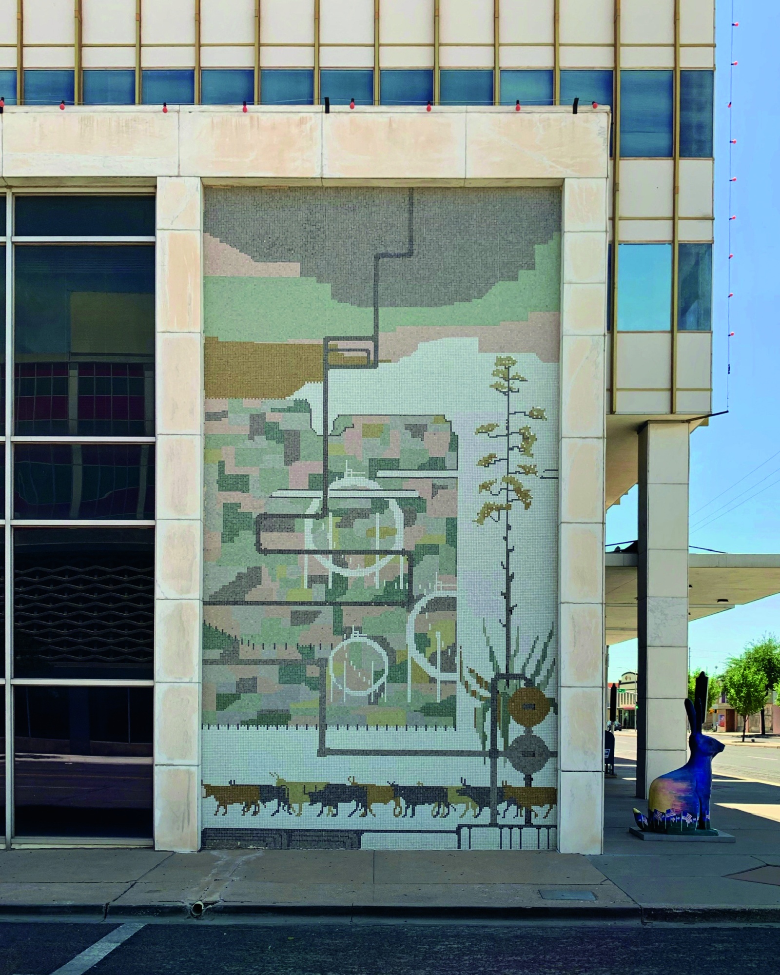 在银行大楼的底层角落,Elizabeth Drane Haynsworth的马赛克为Hedrick的设计增添了独特的地方风味。摄影师:Ben Koush**当我想到我家人居住的地方,圣安吉洛——****Koush:**那是我没去过的一个城镇。我没有足够的时间。他们催促我停止拍照,让凯瑟琳完成写书。
