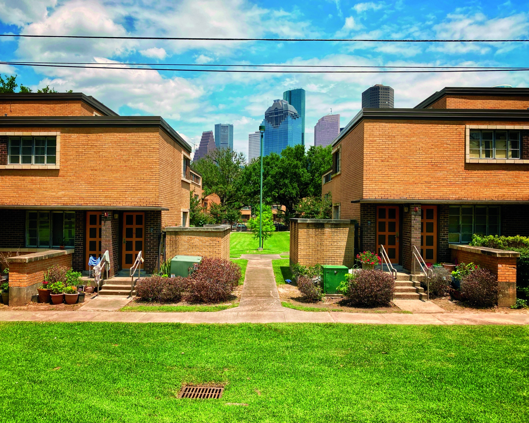 圣菲利普法院,这是休斯顿的一个创新的1940年代公共住房项目,由12家现代主义公司组成的合作建筑师协会设计。摄影师:本·库什**你是如何提出“家,热,金钱,上帝”这些核心主题的?****奥罗克:**本非常慷慨地让我思考如何组织它。我不想做风格,也不想按年代顺序排列,我不希望它成为一本指南。我觉得自己在这个角色中像一个策展人,首先要找出一些主题,这些主题可以让我展现建筑史上的许多问题,但也让我们有机会思考德克萨斯州。你不会在明尼苏达州写关于炎热的内容。