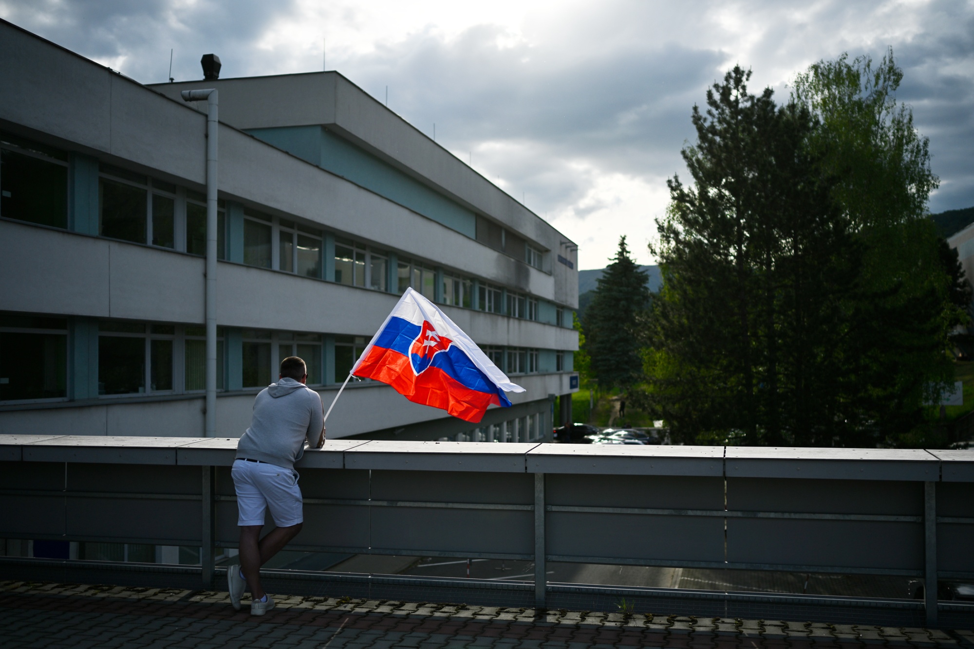 大约100名支持者聚集在菲科接受治疗的医院外,以表达对斯洛伐克领导人的支持。