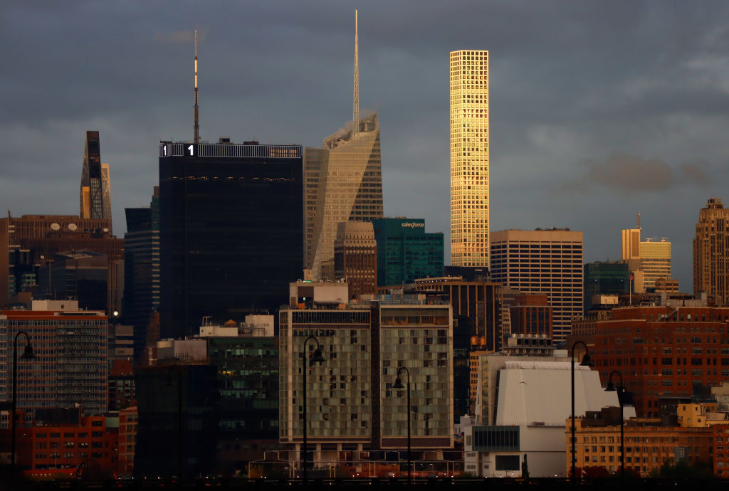 夕阳西下,2021年10月的曼哈顿中城和432帕克大道。