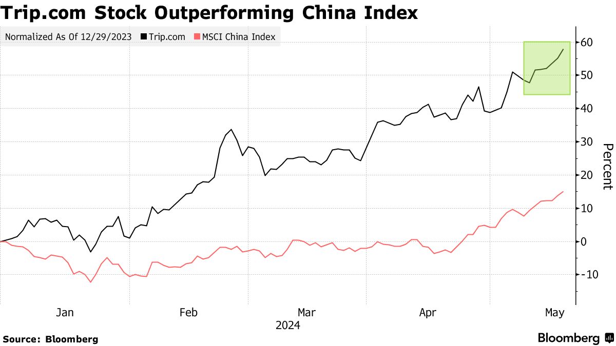 周一,携程股价上涨了多达3.2%,在香港创下新高,今年累计上涨61%。根据摩根士丹利分析师Alex Poon的说法,该公司在入境旅游方面既是“推动者”又是受益者。旅行代理商同程旅游控股有限公司一周前也创下新高。