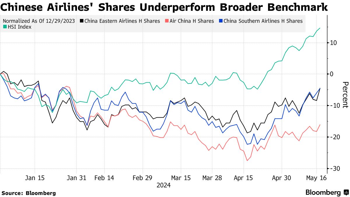 一些类别仍然面临困境。航空公司可能会遇到困难,因为旅行需求的增长“部分是由于航空公司在主要航线上增加航班容量而导致价格下降,”彭博社智库分析师Eric Zhu表示。香港的中国国际航空公司和中国东方航空公司今年以来都表现不佳。