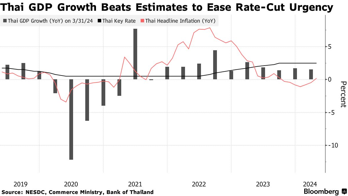 较预期更好的国内生产总值报告可能会减轻泰国央行在6月下次会议上降低借贷成本的压力。财政部长Pichai Chunhavajira上周表示,政府与央行之间的紧张局势似乎在他上周表示将把货币决策交给泰国央行之后有所缓和。说他们将把货币决策留给泰国央行。