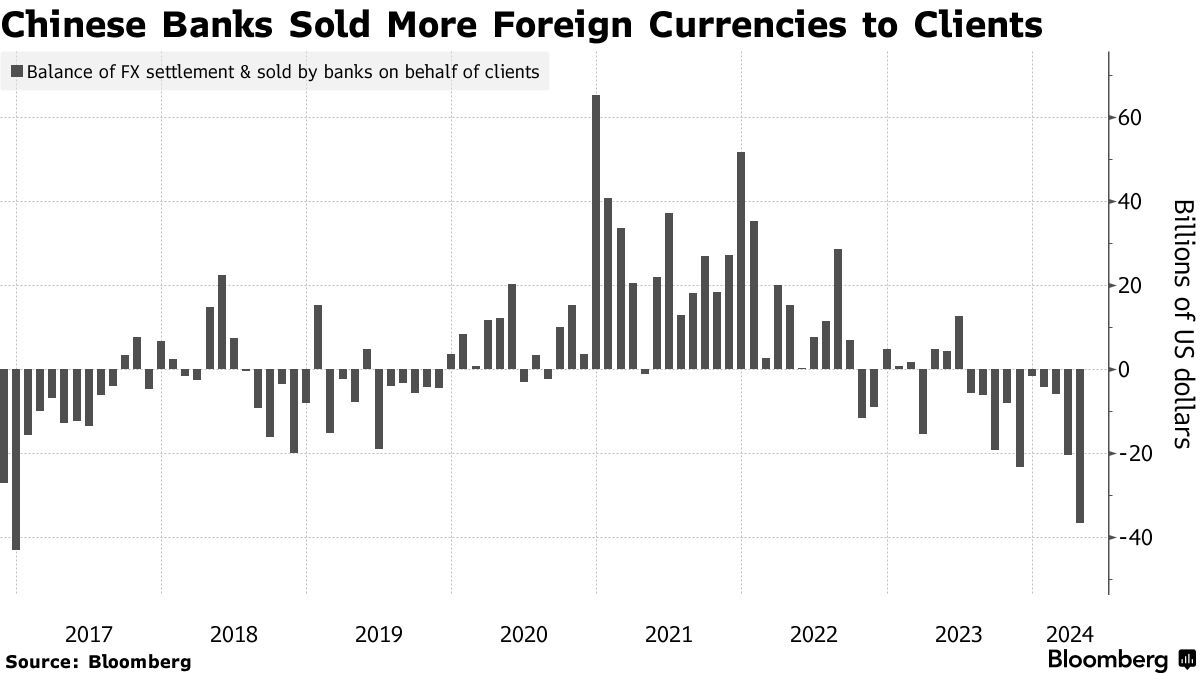 中国银行上个月向客户净售出367亿美元的外汇,是自2016年12月以来最多的,根据国家外汇管理局发布的数据。