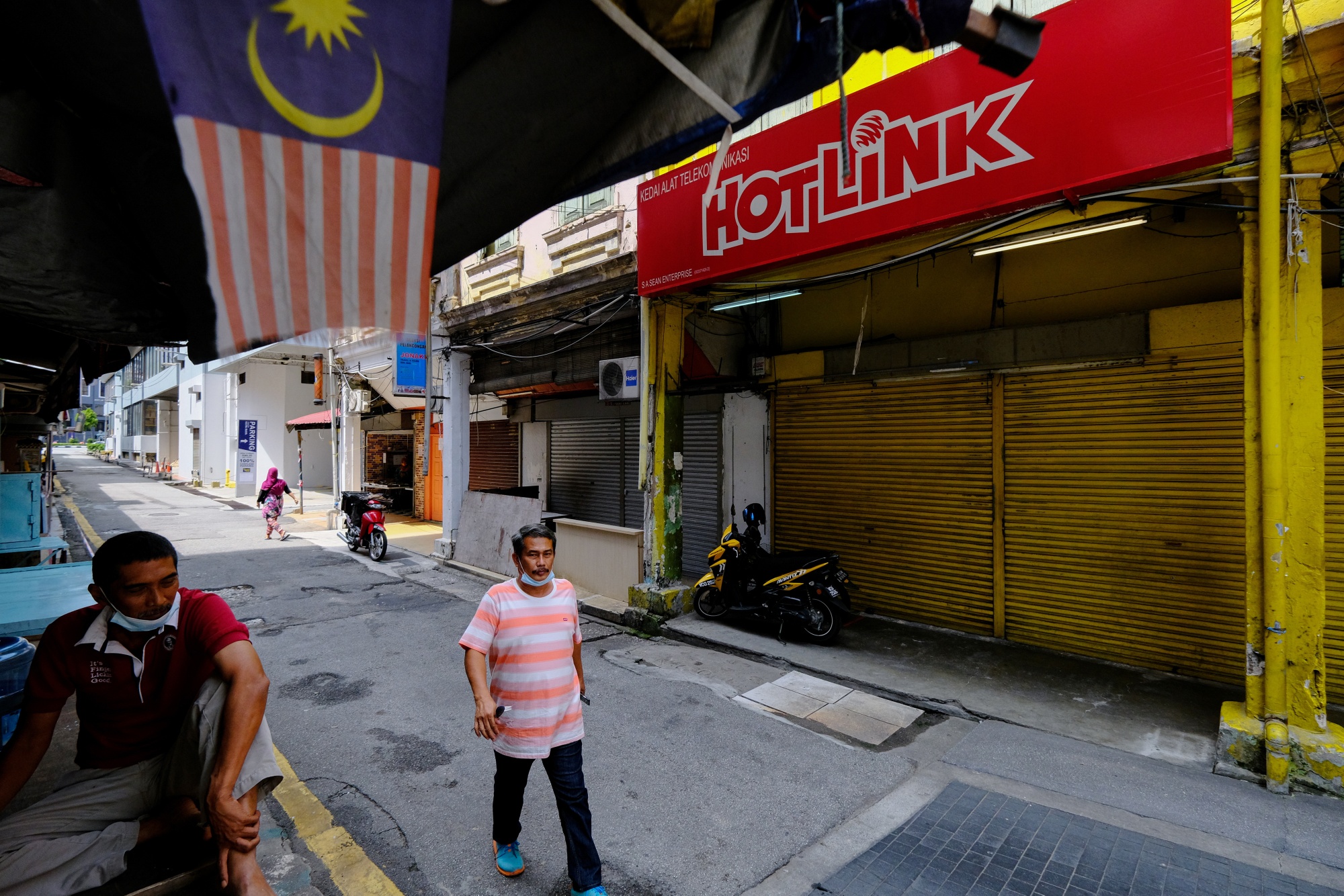 一名行人经过吉隆坡的Maxis Bhd.旗下的预付费品牌Hotlink店铺。