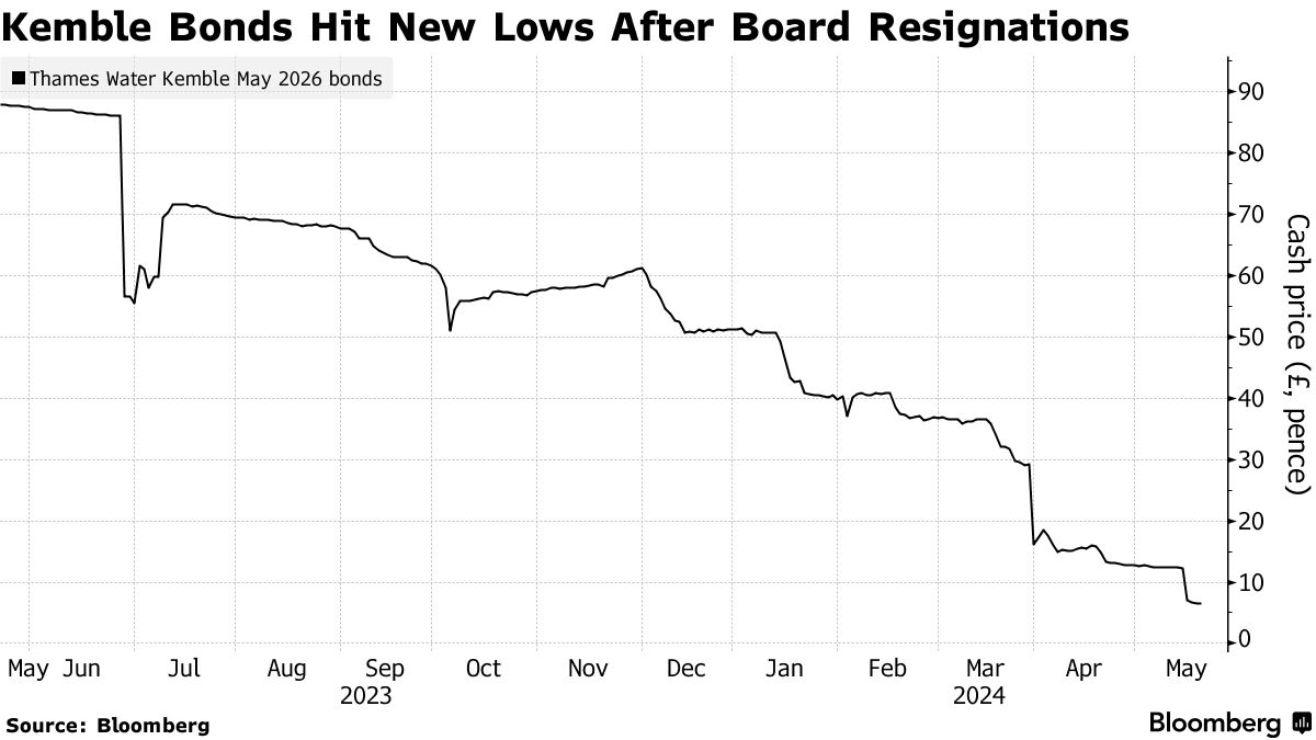 泰晤士水务肯布尔债券暴跌,辞职潮加剧 - 彭博社