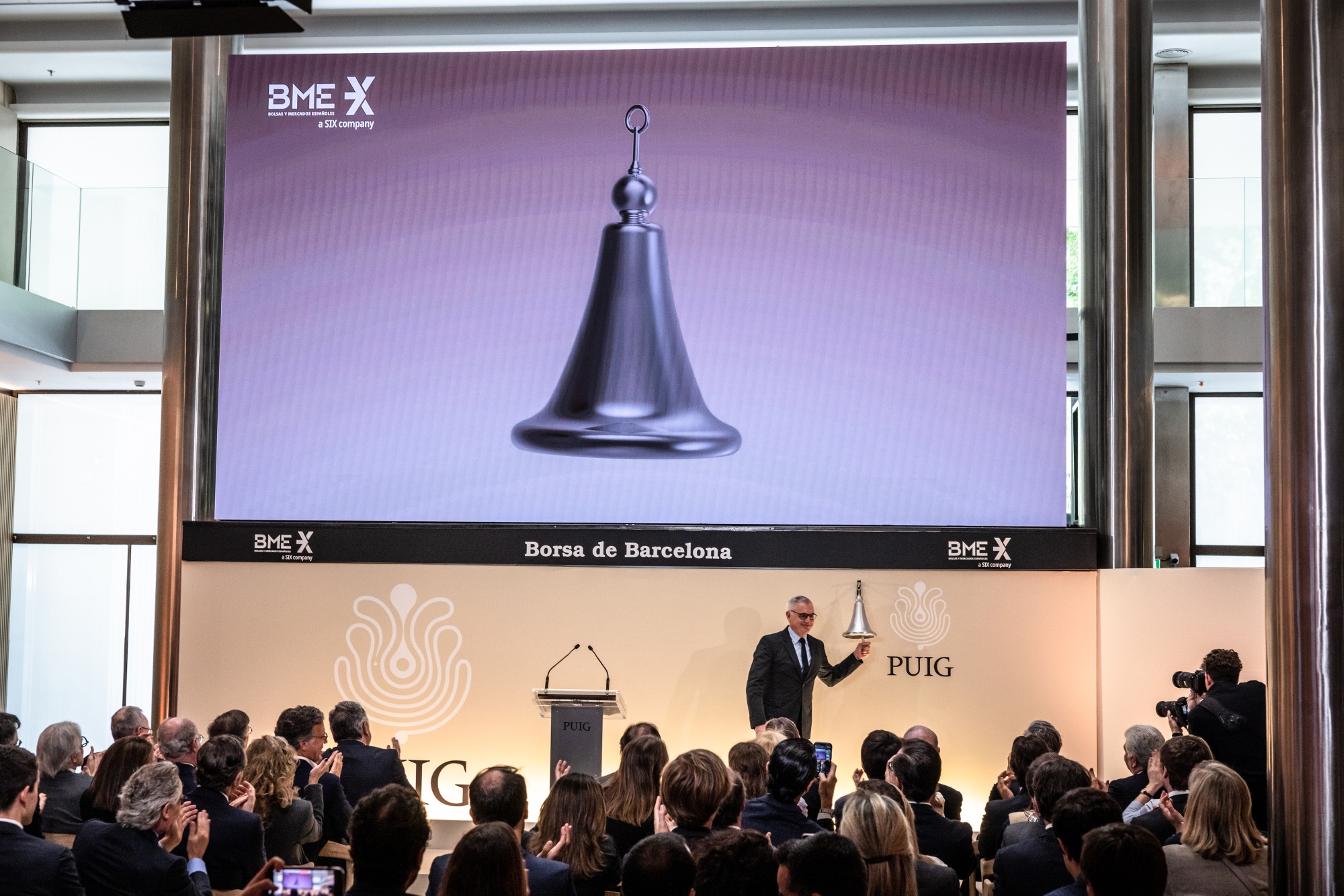 西班牙,巴塞罗那证券交易所举行的普伊格品牌SA上市仪式,日期为5月3日。