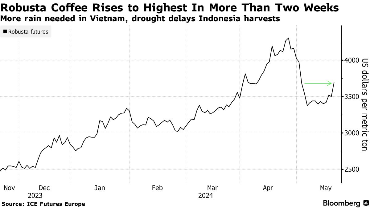 罗布斯塔咖啡因越南降雨问题自2010年以来上涨最多-彭博社
