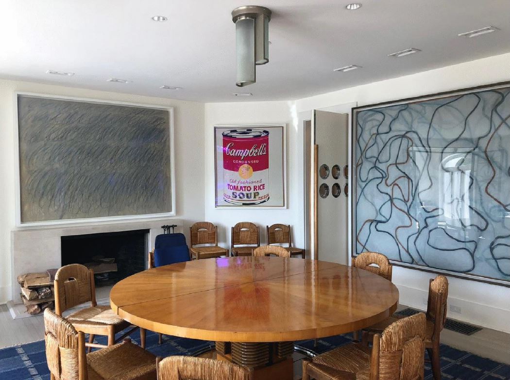 《无题》(1971)作者赛·特朗布利,安迪·沃霍尔的《坎贝尔汤罐头》和布莱斯·马登的《关于岩石的信件#2》曾摆放在佩雷尔曼汉普顿家的餐厅里,火灾前。德意志银行的信用报告称,佩雷尔曼的控股公司麦克安德鲁斯和福布斯将考虑“提出保险索赔,因为他们认为最终的赔偿可能达到3-5倍其最近评估的价值,即3,000-5,000万美元。”