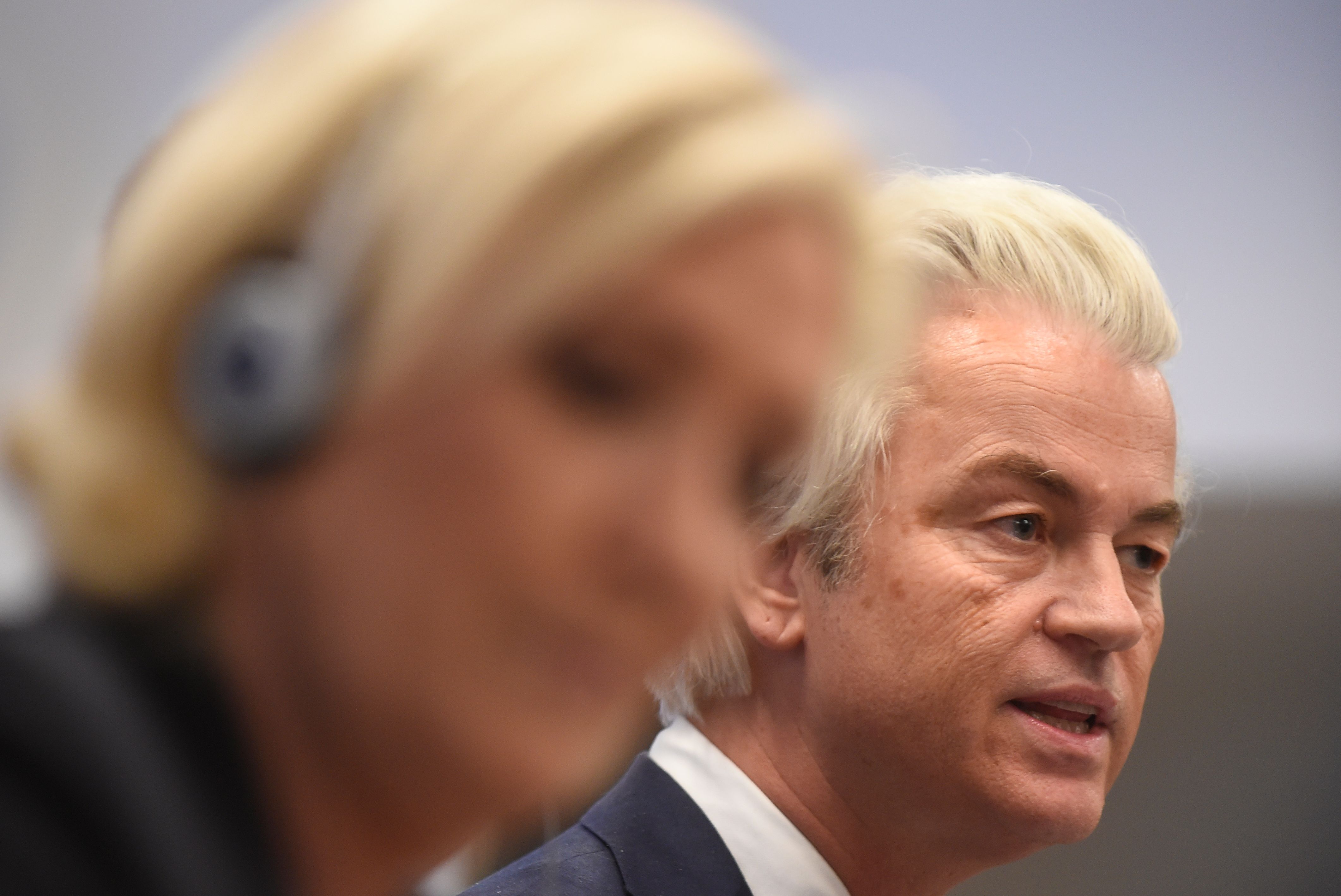 玛琳·勒庞和吉尔特·维尔德斯。摄影师:米哈尔·齐泽克/盖蒂图片社
