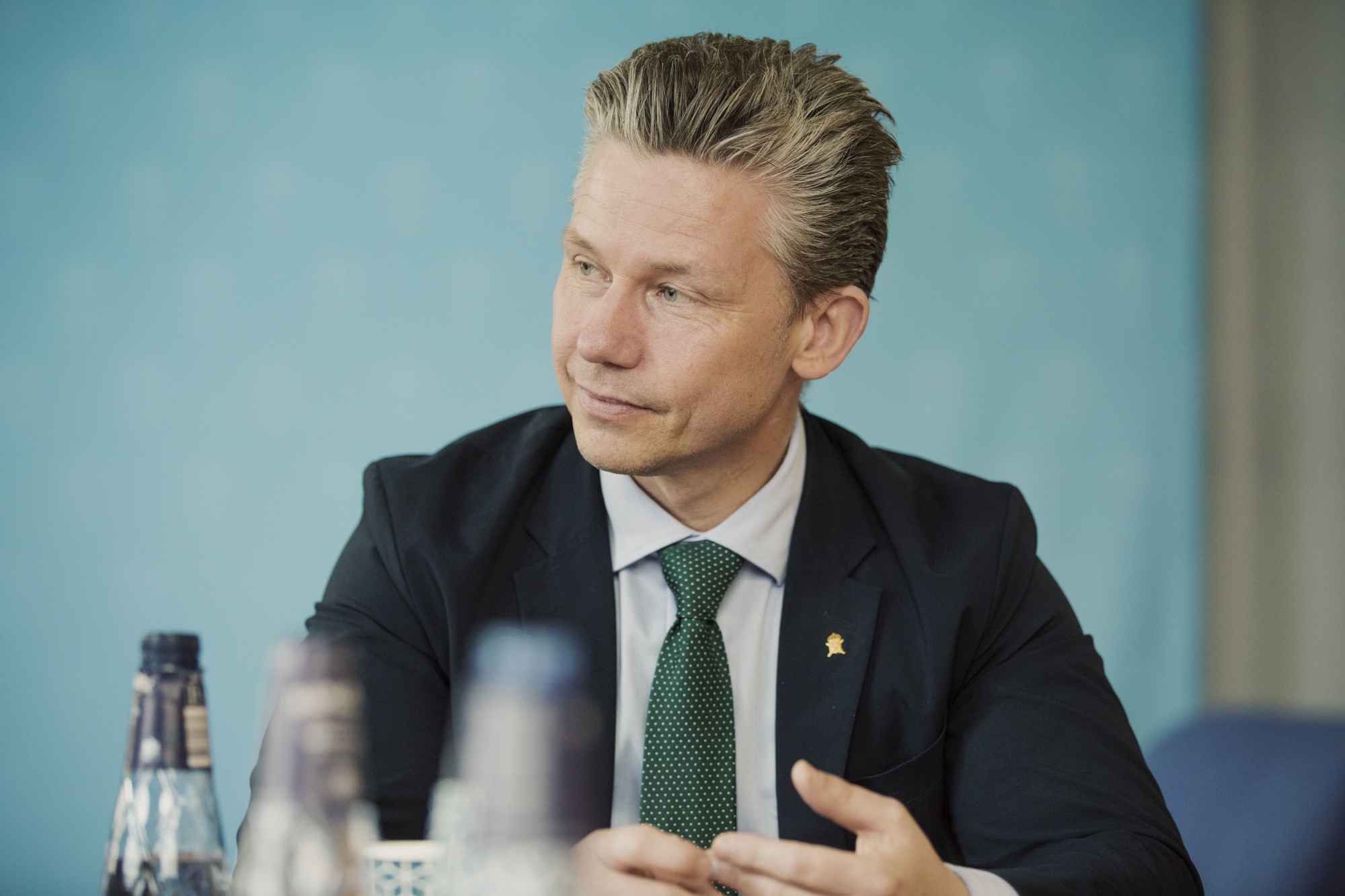 瑞典国防部长帕尔·约翰逊(Pal Jonson)于5月20日在斯德哥尔摩。摄影师:埃里卡·格德马克/彭博社