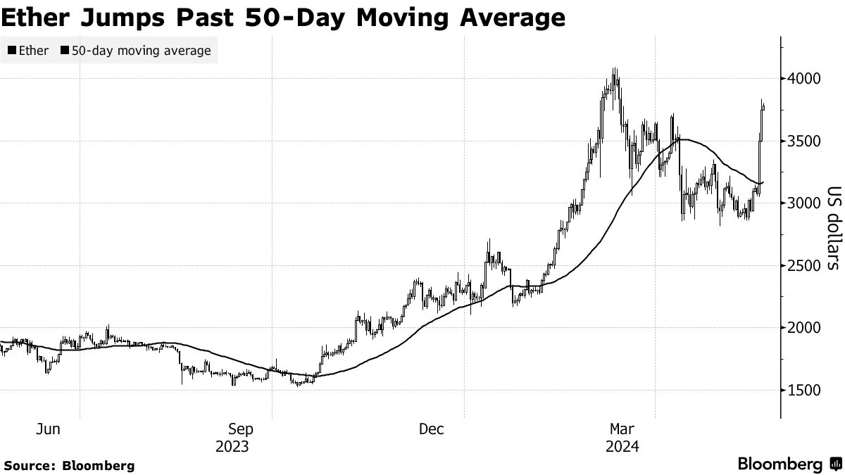 以太币是以太坊区块链的本地代币,是加密货币中最重要的商业高速公路。该代币本周上涨约23%,截至周三上午9点在新加坡约为3780美元交易。