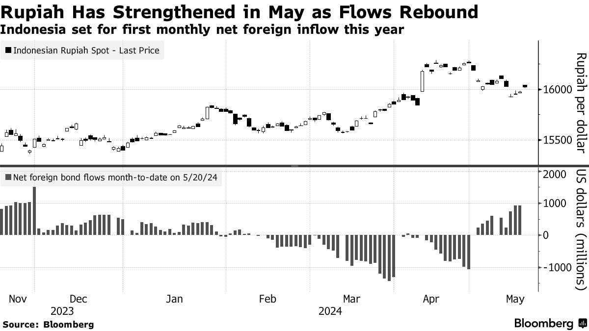 由于印尼央行上个月意外加息,使得印尼债券对投资者更具吸引力,全球资金管理人员在5月份已经向该国债券市场注入了超过9亿美元,使该国有望在今年实现首次月度净流入。