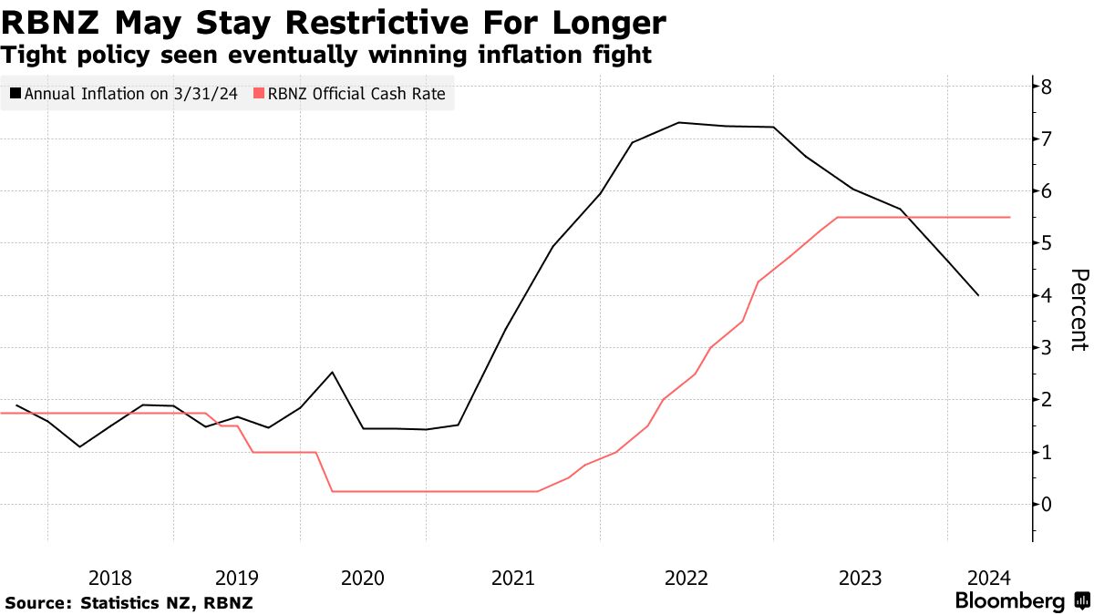 RBNZ保持新西兰利率,预计2025年后期开始降息 - 彭博社