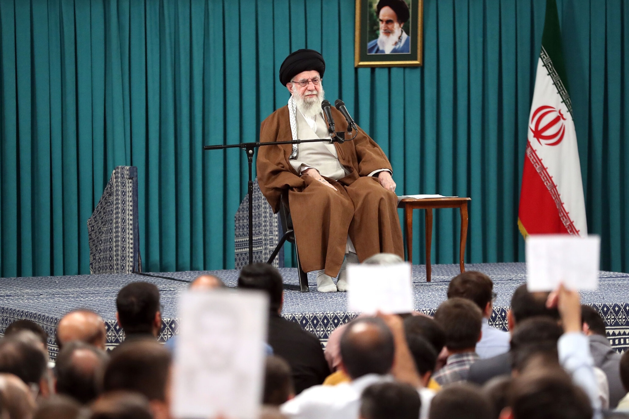 抗议活动席卷全国,牵动社区,明确挑战哈梅内伊及其统治的方式前所未有,最明显的是妇女拒绝戴强制性的头巾或面纱 —— 这是伊斯兰共和国的一个显著特征。安全部队镇压异议,杀害了数百名抗议者 —— 其中大多数是妇女和年轻人 —— 并逮捕了成千上万人,根据人权组织的说法,至少有七名男子因参与示威活动而被绞死。
