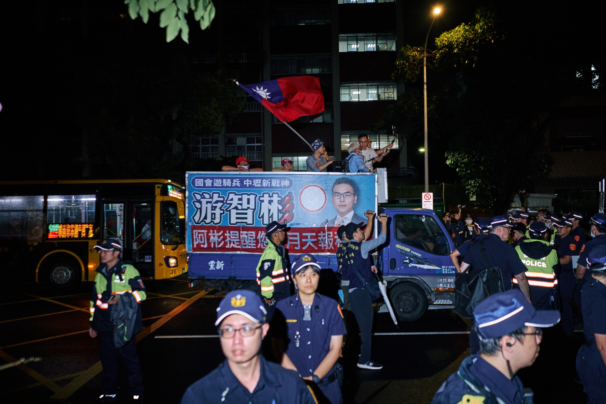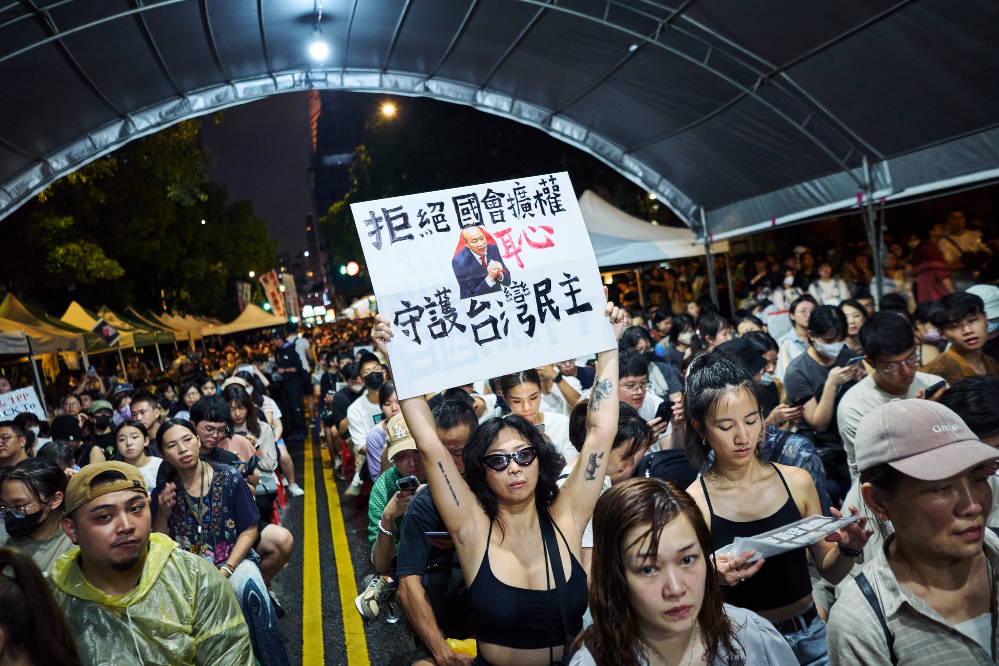两天的休息暂时平息了台北的紧张局势,周二晚上,数千名赖清德支持者和其他人聚集在立法院外,表达他们对修正案的愤怒。