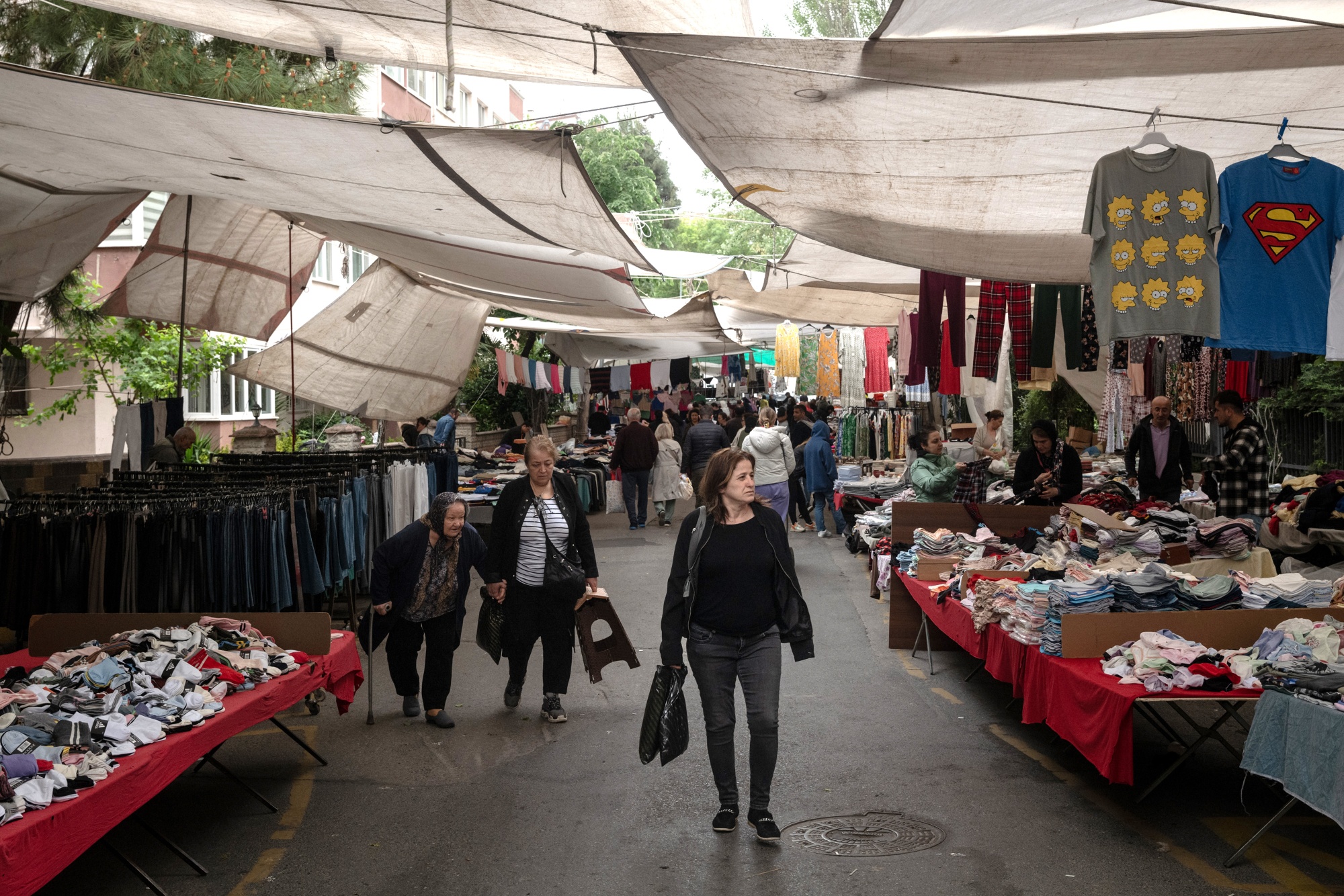 购物者在伊斯坦布尔的星期五巴扎市场上浏览出售各种产品的摊位。摄影师:Nicole Tung/Bloomberg土耳其央行将忽略本月通胀的最后一波上涨,预计将达到约75%,可能会延长其利率暂停,其理由是专注于更乐观的预测。
