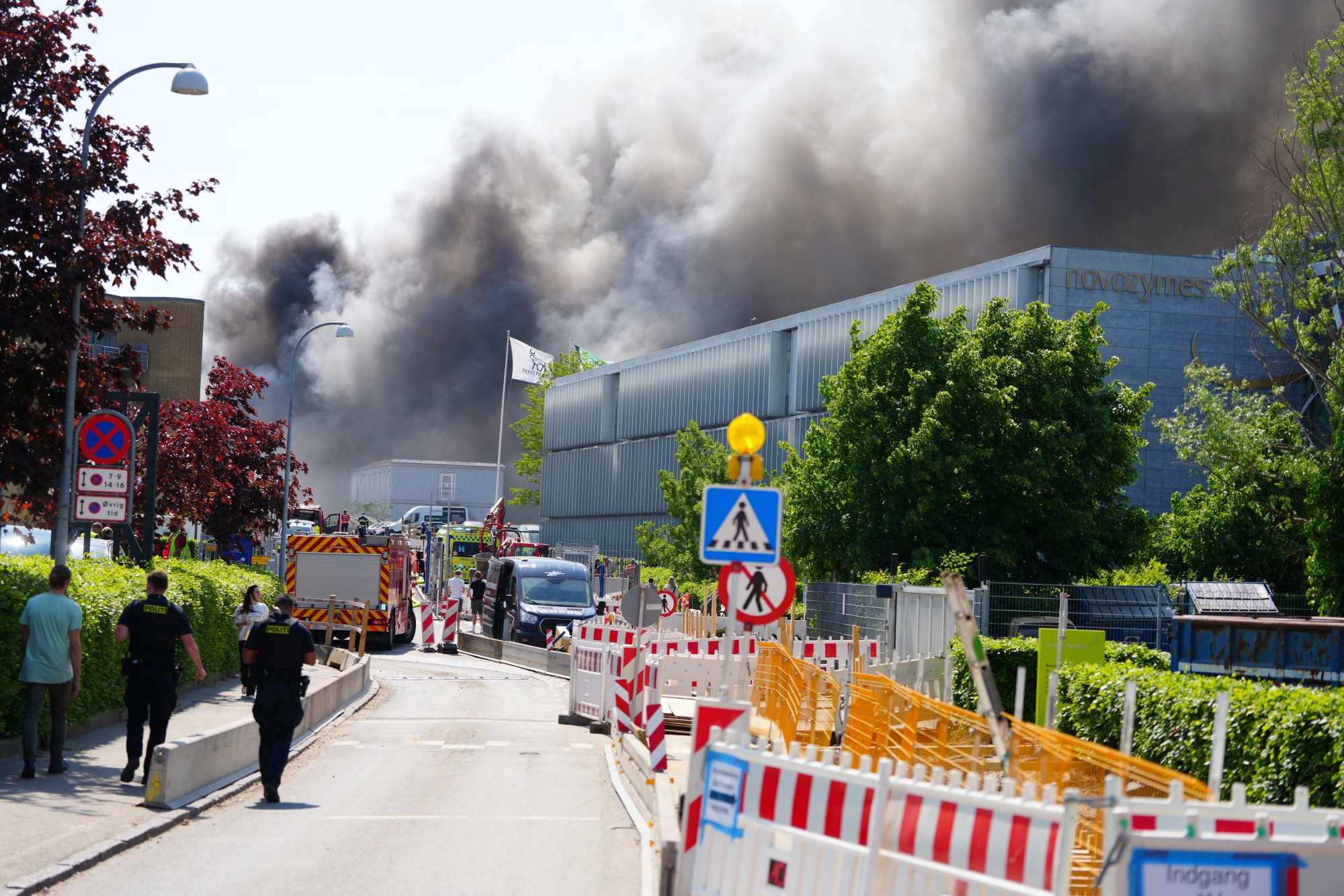 警察和消防员在5月22日围绕Bagsvaerd的Novo Nordisk总部安全区域。摄影师:丽丝洛特·萨布罗/里茨奥·斯坎皮克斯/美联社照片一辆移动起重机现已到场,帮助清理设备和部分坍塌的屋顶,以便服务人员进入建筑周围的火灾区域,斯托尔加德表示,该建筑用于冷却设备、办公室、会议室和实验室。他说,周围建筑物的人们在当天早些时候已经被疏散。