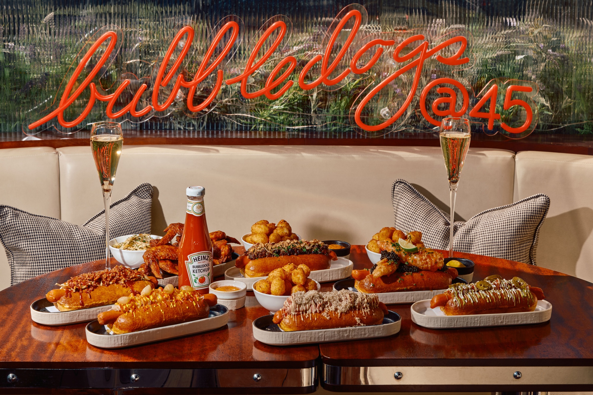 张为今年夏天在45 Park Lane酒店的弹出式活动重新开设了Bubbledogs,炸鸡翅的生意兴隆,与近50种只提供起泡酒的名单搭配得很好。