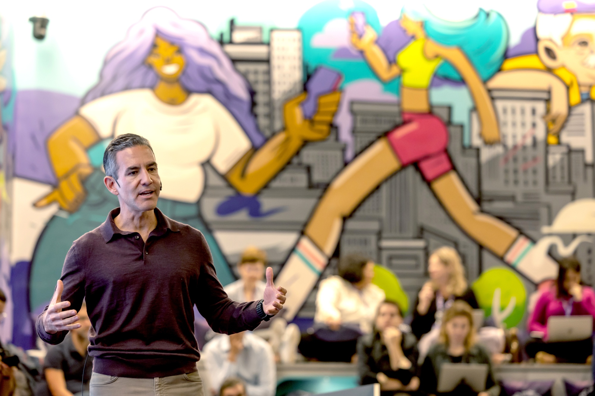 David Velez 在 5 月 15 日在圣保罗公司总部的活动中发言。摄影师:Jonne Roriz/Bloomberg