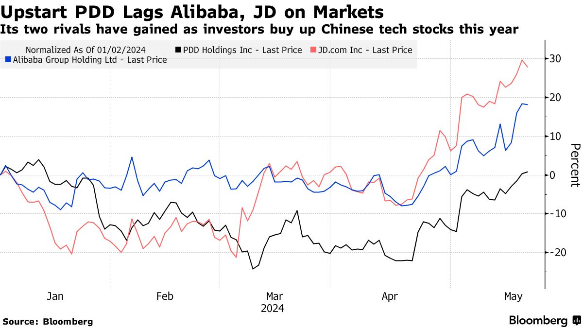 PDD的收益可能有助于支撑香港市场的反弹,作为后疫情时期中国经济消费的重要指标之一,该经济一直受到房地产崩盘和持续的青年失业问题的困扰。但在超过远大于自身的竞争对手阿里巴巴集团控股有限公司和腾讯控股有限公司在过去两年中的营收增长方面表现出色后,市场对其期望值不断提高。周三,高管们指出国内环境正在改善。