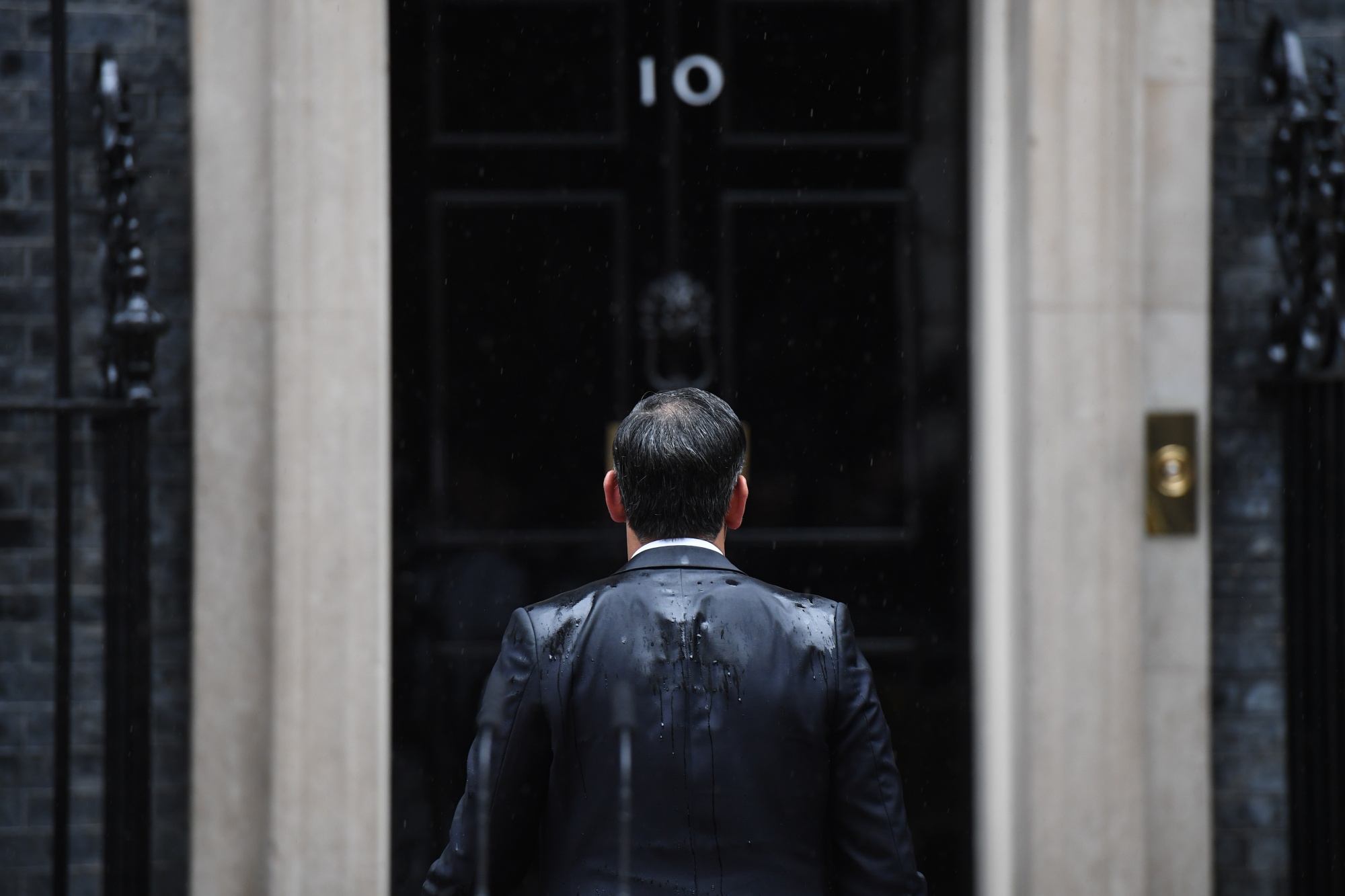 一场淋湿了的雷希·苏纳克在今天宣布大选后回到了唐宁街10号。