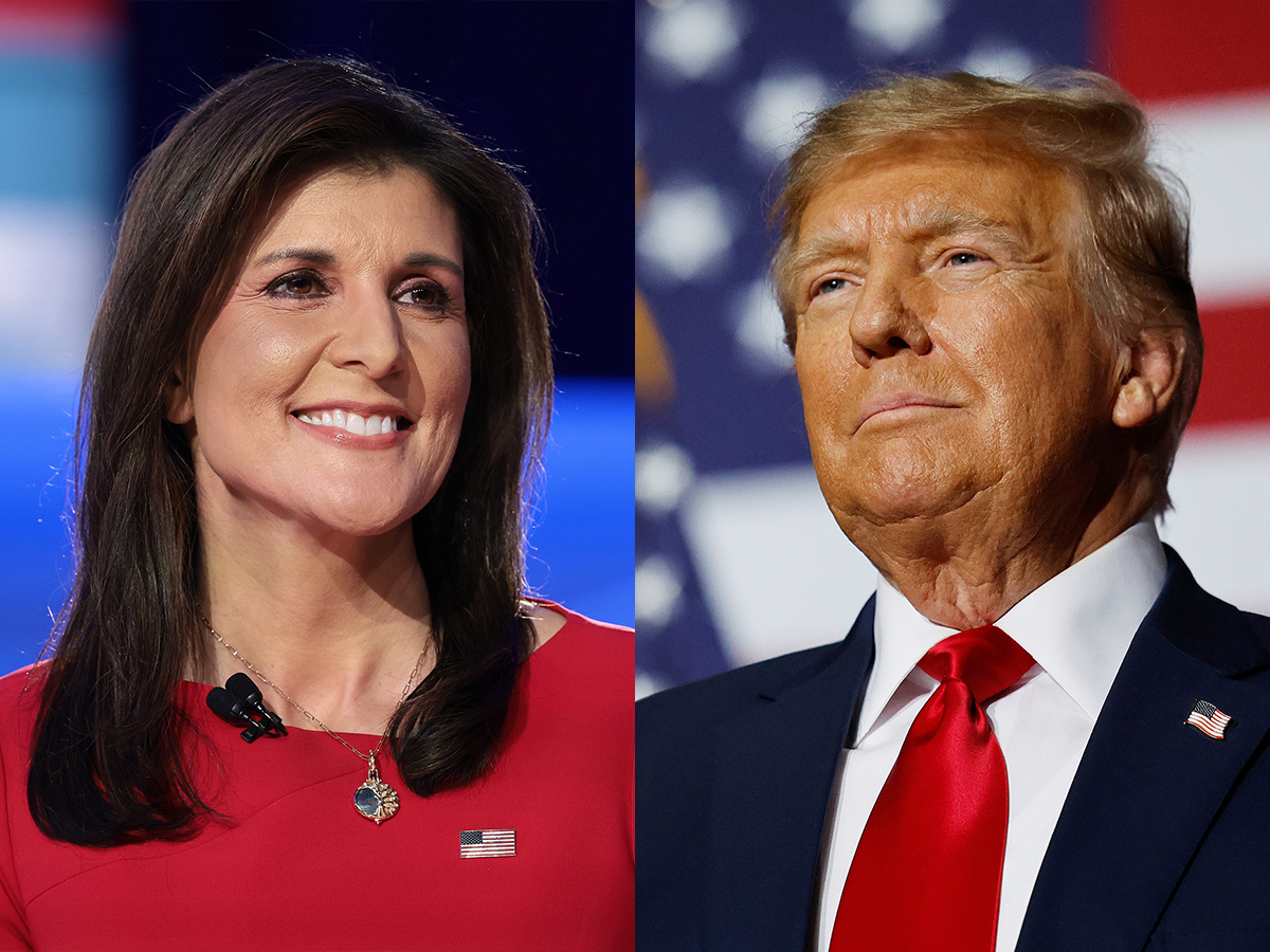 尼基·哈利和唐纳德·特朗普摄影师:温·麦克纳米和奇普·索莫德维拉/盖蒂图片社