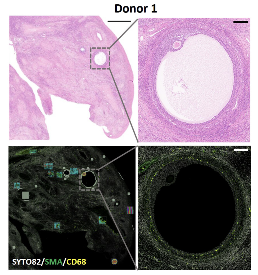 在4月份发表在Science Advances上的一篇论文中,密歇根大学的科学家描述了他们如何以单细胞分辨率绘制了人类卵巢。使用空间转录组学——一种新兴技术,使科学家能够研究特定组织的RNA序列,揭示哪些基因正在表达——团队能够理解特定细胞的功能并将其定位在卵巢内。