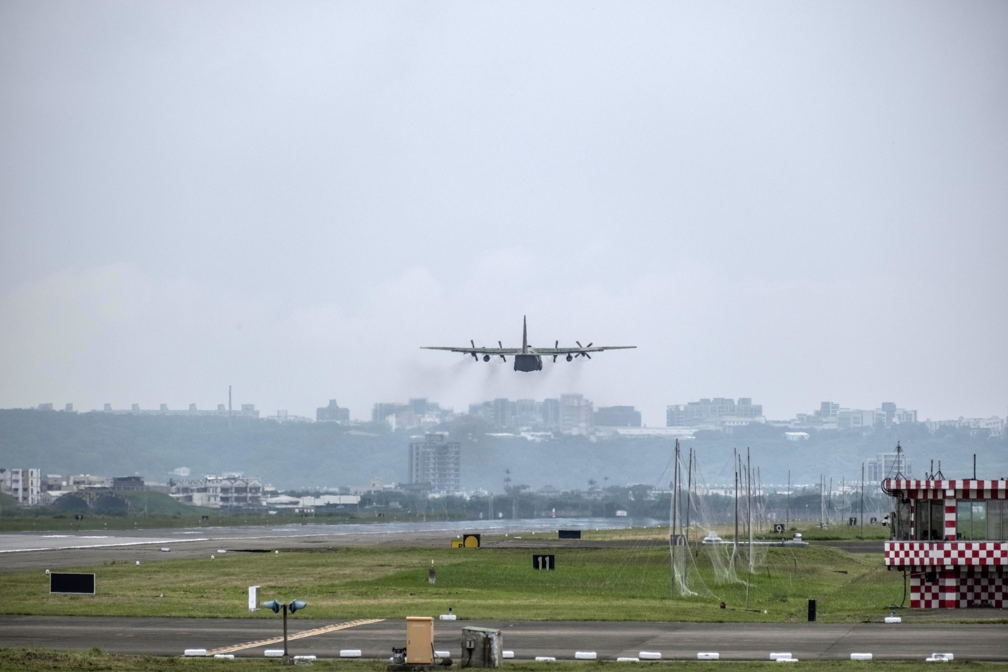 一架台湾空军C-130大力神军用运输机从台湾新竹空军基地起飞。Lam Yik Fei/Bloomberg其他新闻:
