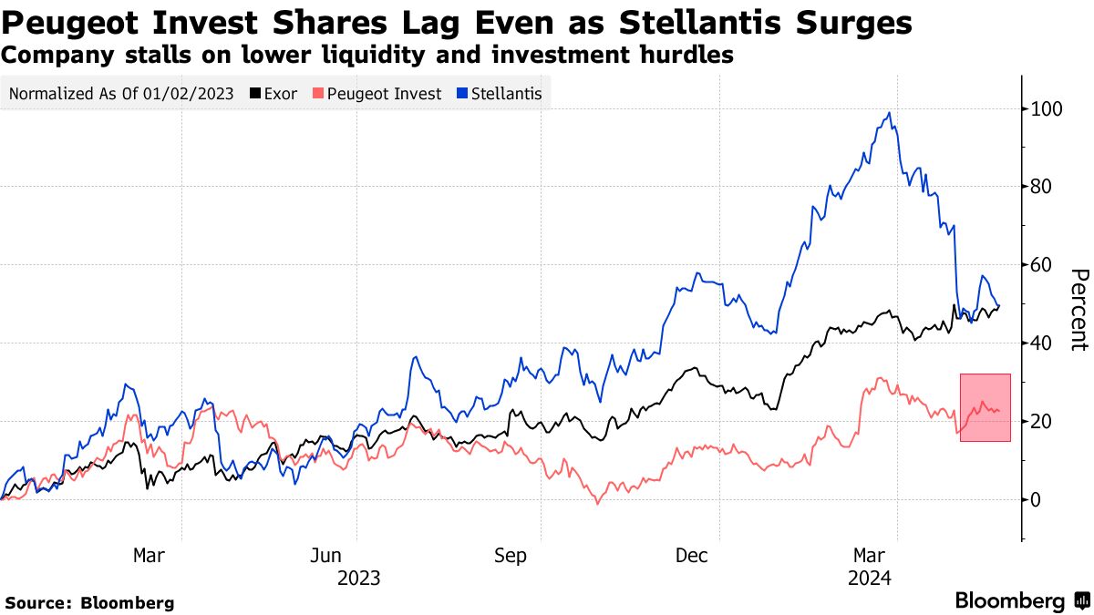 尽管Peugeot Invest的折价已经从几年前的约30%扩大,他说,这只是证明较窄的折价是可能的。他说,其他控股公司也看到了折价的扩大。