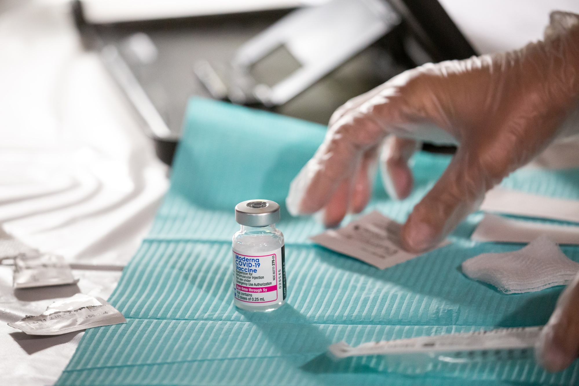 一名医护人员准备一剂Moderna Covid-19疫苗。