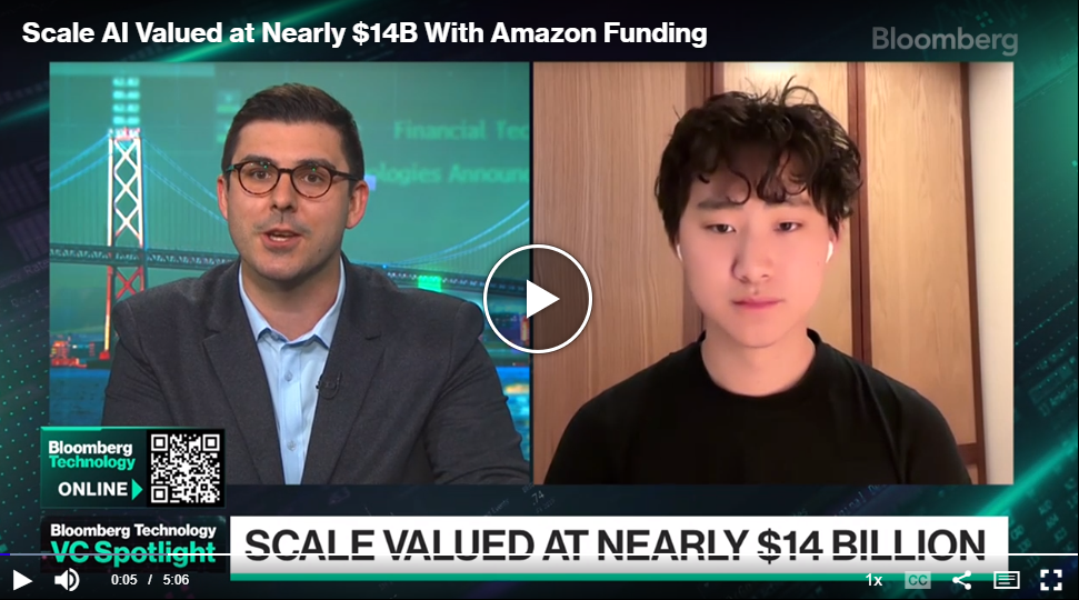 观看初创公司Scale AI的首席执行官Alexandr Wang在彭博电视台接受采访,谈论公司最新的融资轮。### 充分充电