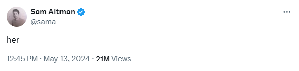 但大多数人在上周公司宣布最新旗舰AI模型GPT-4o以及阿尔特曼发推文“her”之前,并没有太在意(甚至没有听到)。 (阿尔特曼还在5月10日联系了约翰逊的团队,就在揭示GPT-4o及其额外语音功能的几天前,告知他们有关产品发布,并询问她是否有兴趣成为ChatGPT的声音。)