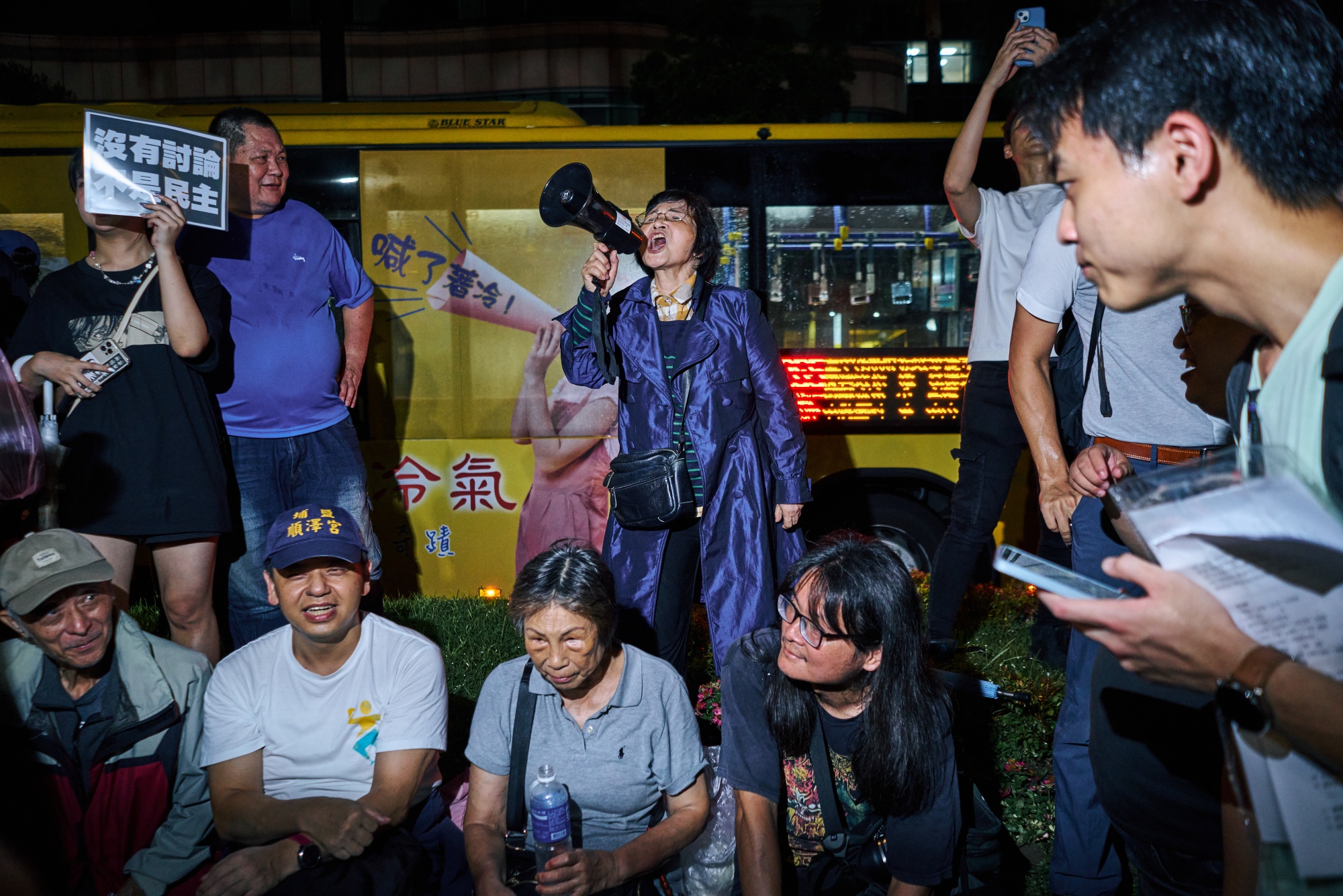 台北,台湾,5月21日,在立法院外举行抗议活动的示威者。