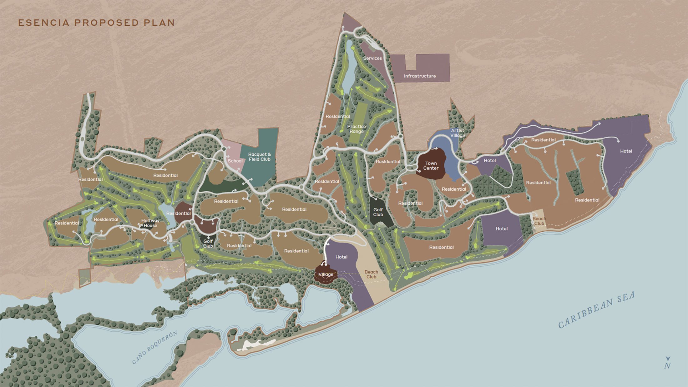 该地点包括超过2000英亩(809公顷)的土地,将设有两个高尔夫球场、一个马术中心和一所双语K-12学校。该计划将分为五个阶段实施,第一阶段预计在开始施工后三年内完成。